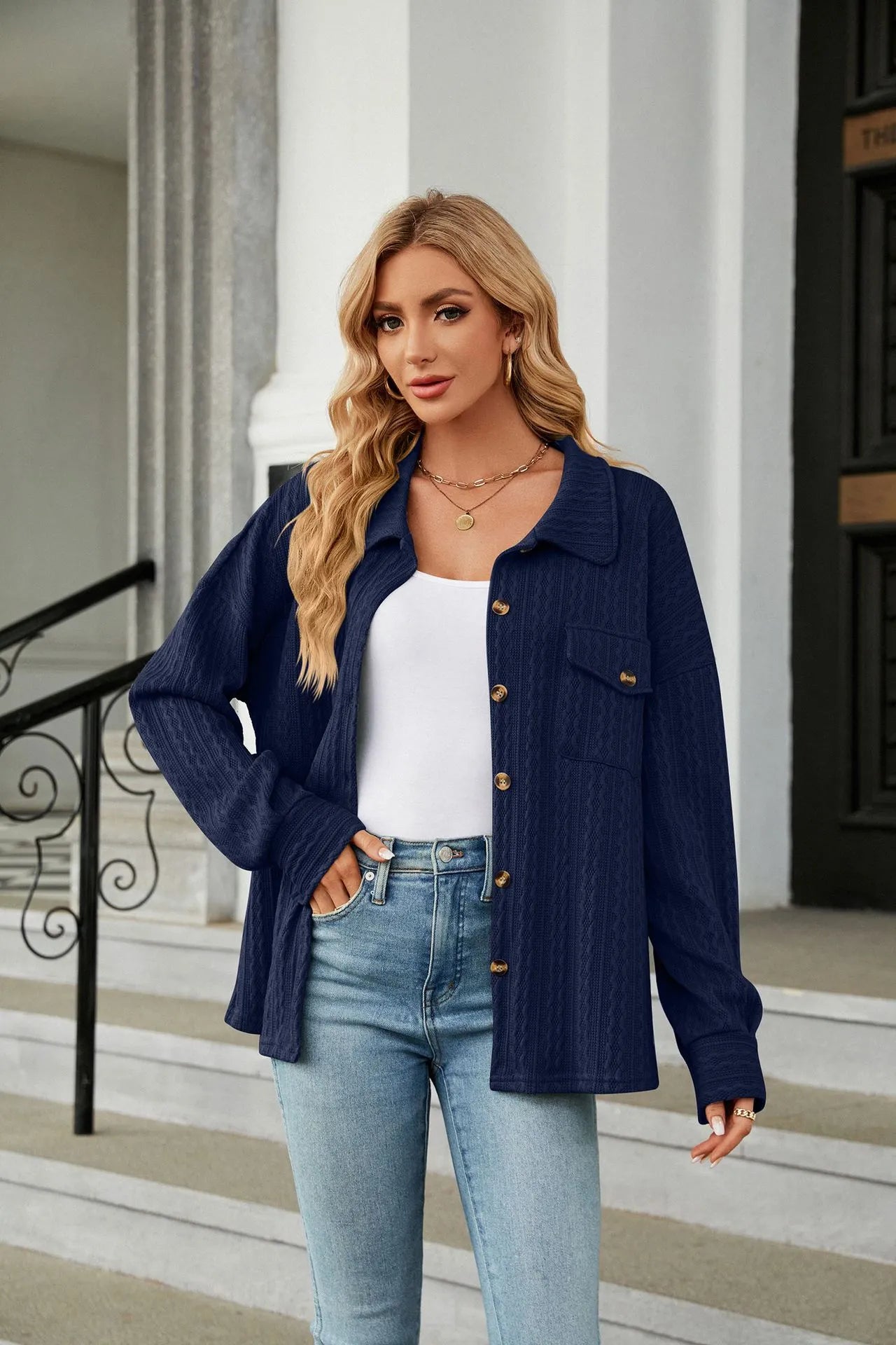 Denna söta blus har långa ärmar, krage, bröstficka och knappar. Modellen är mönstrad och tillverkad av ett smidigt tyg.